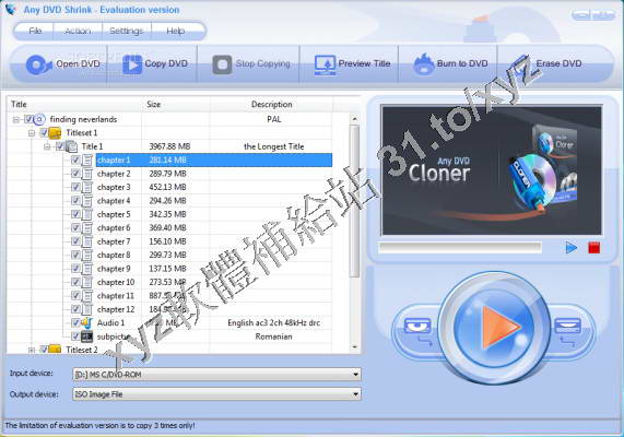 是一款簡便易用但是功能強大的DVD電影備份軟體,可進行DVD拷貝,壓縮,燒制,擦寫